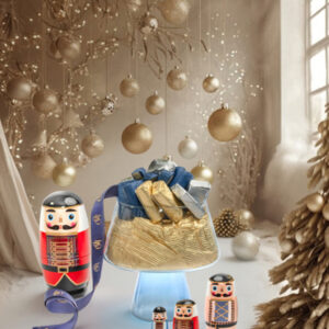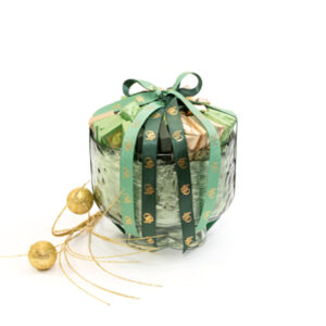 Coupelle ronde sur pied en verre fumé garnie de chocolat