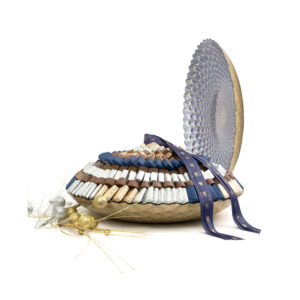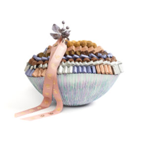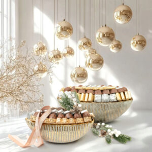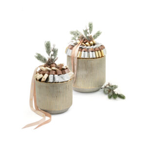 Belle coupe en céramique ornée de rayures dorées garnie de chocolats