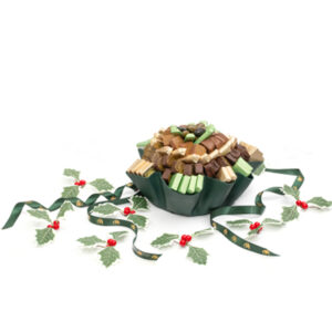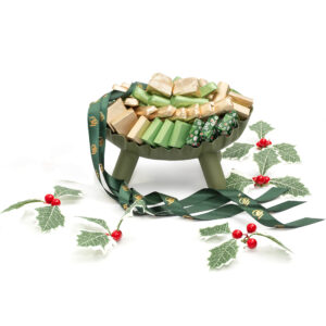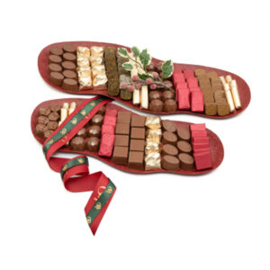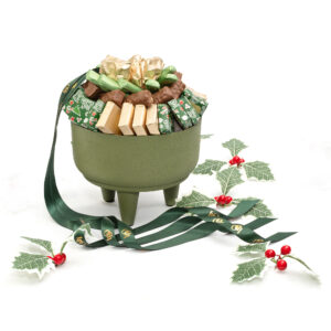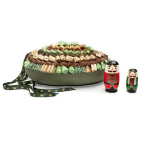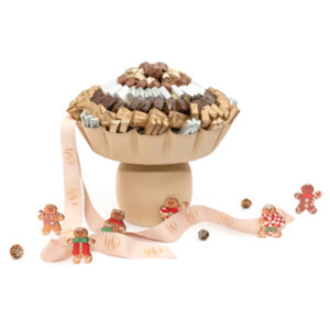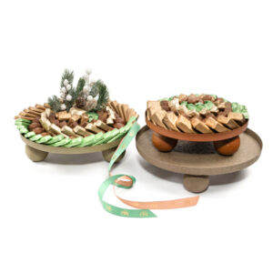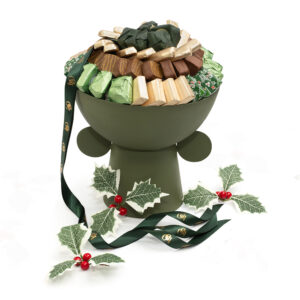Assiette ronde sur pieds en métal coloré garnie de chocolat