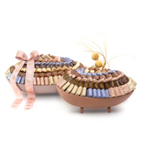 Superbe coupe ovale en métal coloré garnie de chocolat