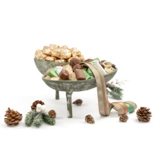 Coupe ronde sur pieds en métal coloré garnie de chocolat