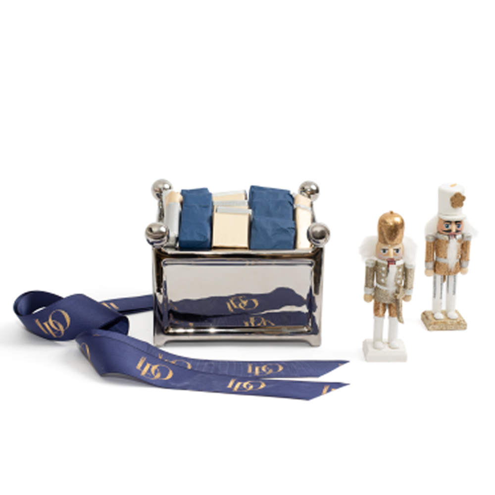 Coupe carrée en porcelaine – argentée – garnie de chocolat