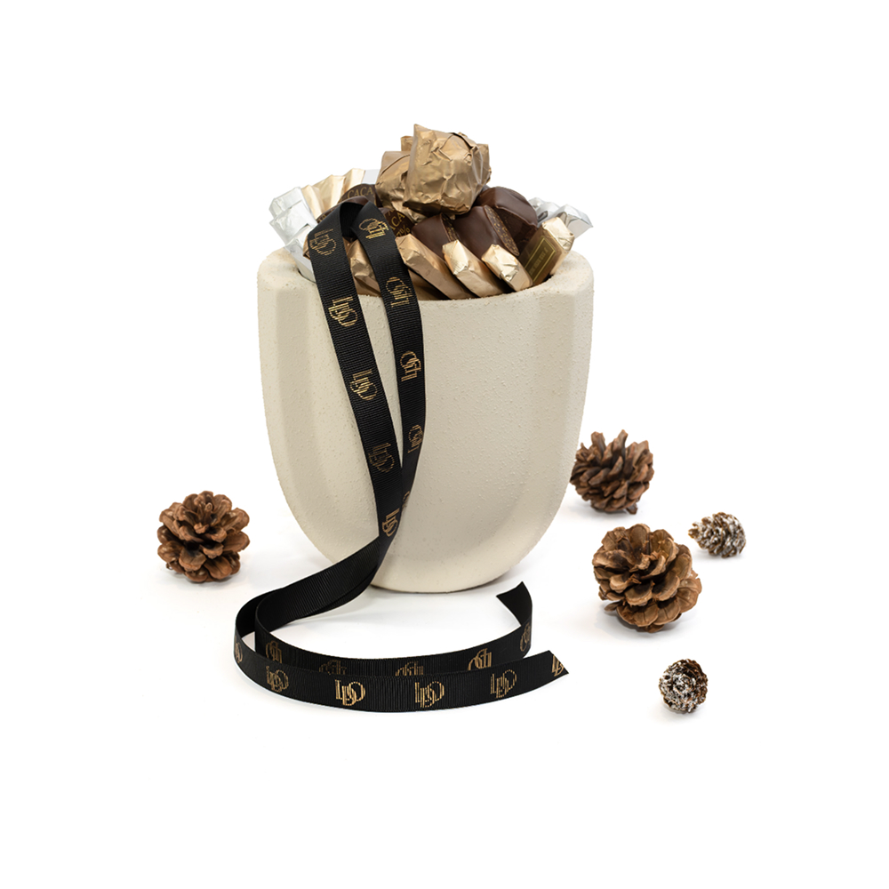 Coupe demi-sphère en porcelaine écrue – 250gr – garnie de chocolats
