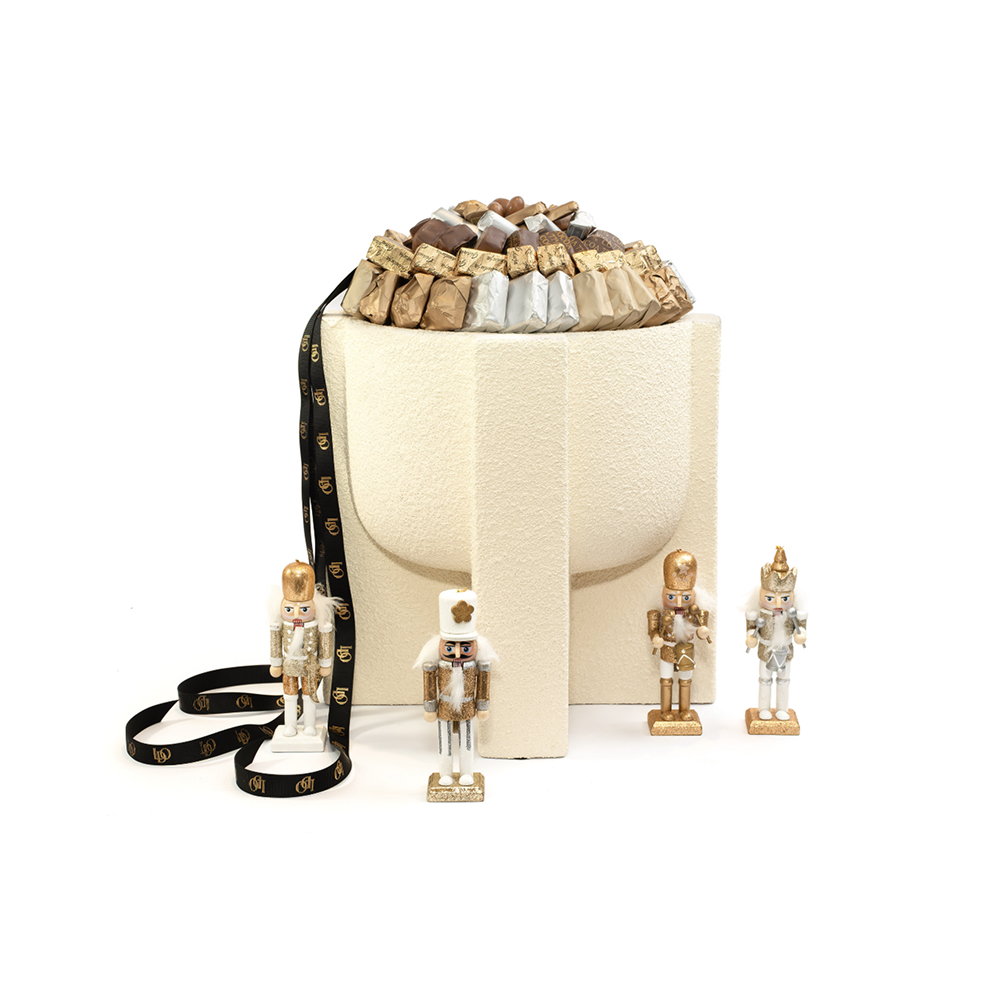 Coupe ronde sur socle en porcelaine écrue – 1400gr – garnie de chocolat