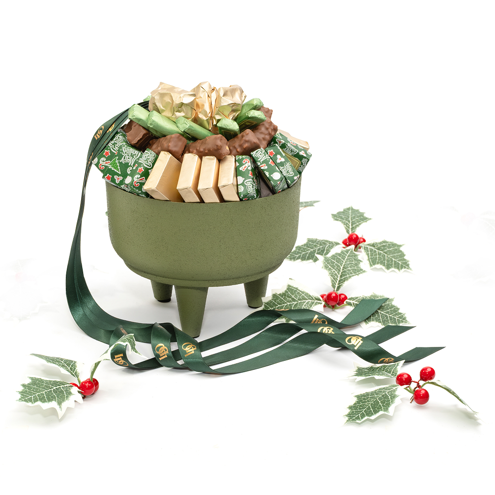 Coupelle sur pieds en métal garnie de chocolat