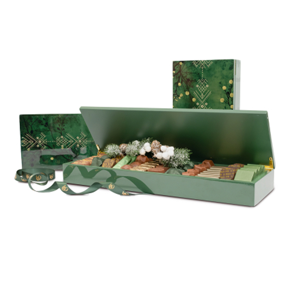 Magnifique boîte en bois laqué ornée de motifs amazighs garnie de chocolat