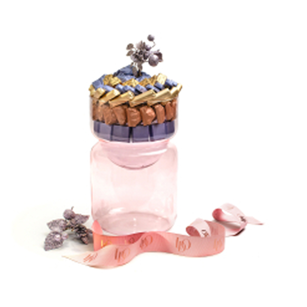 Coupelle ronde sur pied en verre fumé garnie de chocolat